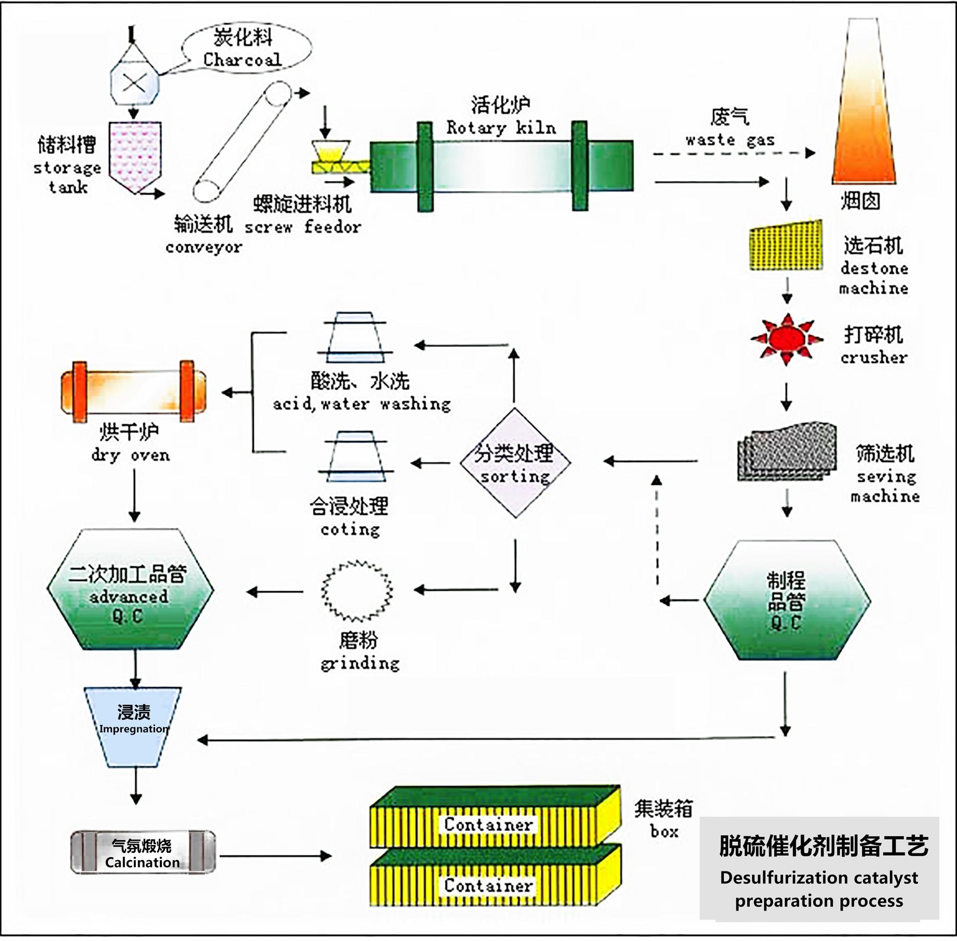 公司致力于炭基脫硫催化劑產(chǎn)品研發(fā),創(chuàng)新。以精選優(yōu)質(zhì)炭基為載體,經(jīng)特殊加工及活性組分負(fù)載,制備柱狀、顆粒、粉末、球形等脫硫催化劑。不同于傳統(tǒng)的炭法煙氣吸附脫附脫硫技術(shù),新型催化劑法技術(shù)既具有吸附功能,又具有催化功能。催化反應(yīng)生成的硫酸富集在催化劑載體中,當(dāng)脫硫一段時間飽和后,進(jìn)行再生,催化劑脫硫能力可完全恢復(fù)。